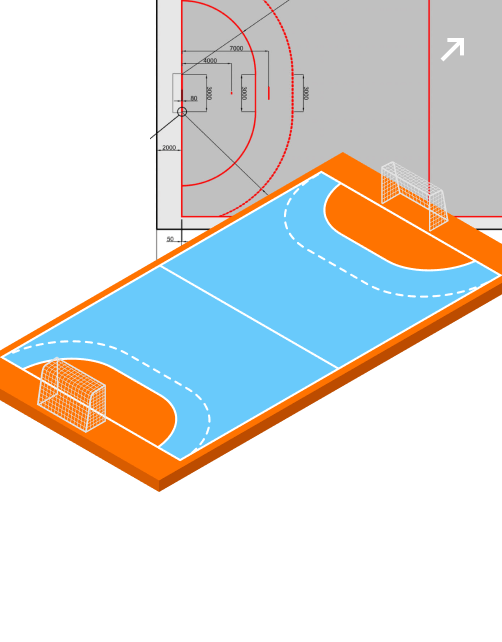 Прорисовка разметки прыжковых секторов и зон метания снарядов.